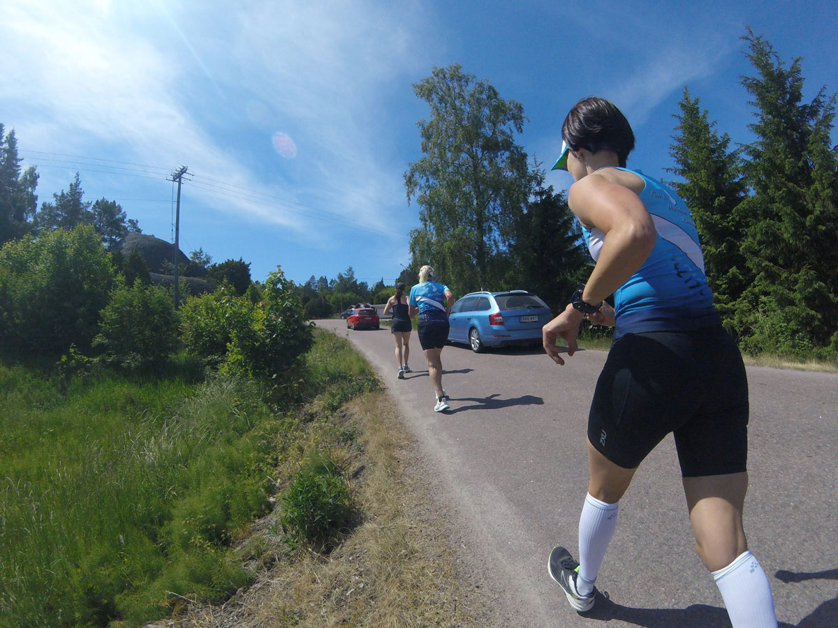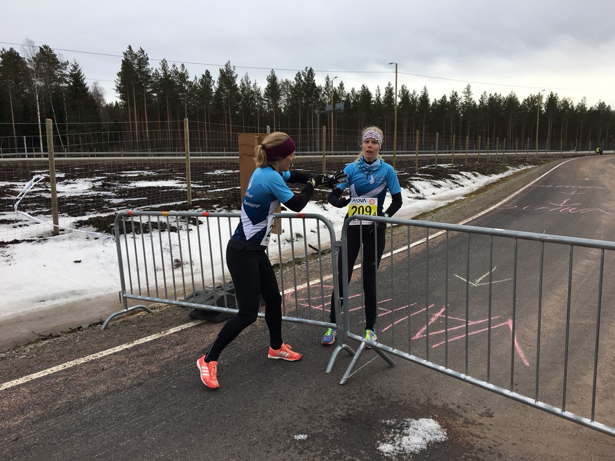 19.05.2018 Helsinki City Running Day Helsinki City Marathon ja Run yhdistyivät tälle vuodelle yhdeksi Helsinki City Running Day tapahtumaksi. Ainakin FMR-läisittäin uudistus veti väkeä, yleisellä tasolla on vaikea mennä sanomaan saiko tapahtuma uutta nostetta vai ei. Seuran identiteetin mukaisesti maratonilla nähtiin kovempaa jälkeä kuin puolimaratonilla. Jyrki Kukko voitti M50-sarjan ja Timo Toivari M55-sarjan. Lisäksi M55-sarjassa Kimmo Oinas nappasi pronssia. Mainittakoon myös että Heli Lehtinen osui jäniksenä sekunnilleen oikeaan loppuaikaan. Puolimaratonilla tuttuun tapaan Henri Ansio taisteli kärkisijoista, tällä kertaa saaliina oli pronssia. Uusia nimiä on tullut puolentoistatunnin korville ja mielenkiinnolla seurataan mihin suuntaan ajat lähtevät kehittymään.19.05.2018 Helsinki City Marathon Jyrki Kukko, M50 1., 2:53:29 Tero Halme, MYL 16., 2:59:54 Timo Toivari, M55 1., 3:06:08 Kimmo Oinas, M55 3., 3:21:00 Jussi Suoyrjö, M40 22., 3:28:58 Heli Lehtinen, N50 11., 4:00:00 Aarne Jaakkola, M50 72., 4:15:05 Katja Jokela, NYL 75., 4:15:17 19.05.2018 Helsinki City Run Henri Ansio, MYL 3., 1:10:40 Rami Ranta, MYL 95., 1:29:50 Aleksi Palo, MYL 104., 1:30:19 Jari Palo, M50 38., 1:36:57 Tuula Sivander-Heinonen, N45 10., 1:39:49 Jyri Heinonen, M50 89., 1:44:32 Kaisa Unkila, N45 69., 1:57:05 Minna Nurminen, N35 159., 2:03:22 ![]() Jyrki Kukko ja Timo Toivari - Onnelliset voittajat 19.05.2018 Yyteri Maraton Yyteri kuuluu yleensä niihin joissa sää voi vaihdella noin -3:n ja +26:n välillä. Tällä kertaa olosuhteet olivat lämpötilan puolesta hyvät, lämpötila n. +15, mutta tuuli oli aika reipas. Suhteessa kovinta vauhtia piti Minna Kervinen, joka voitti maratonilla naisten kokonaiskilpailun ja tietysti myös oman sarjansa. Minna Kervinen, N40 1., 3:08:09 Mikko Tiistola, MYL 7., 1:33:43 Tuomas Pelto, M40 8. 1:37:31 09.05 - 13.05.2018 Kevätleiri ja 12.05.2018 Sappee UpHill Run Tällä kertaa leiriä vietettiin pidennettynä viikonloppuna keskiviikosta lauantai-iltaan, sillä jaksoon sattui helatorstai. Mitään yleisöryntäystä ei kuitenkaan tullut vaan leirille osallistui lopulta 9+1 henkilöä. Tällä kertaa kävi jopa niin että vanhoista huoltojoukoista oli enemmän osallistujia kuin varsinaisista leiriläisistä! Pidennetyn leirin ohjelmaan saatiin ämpättyä hieman muutakin kuin juoksua, venyttelyjä, lihaskuntoa, rapputreeniä. Eikä juokseminenkaan päässyt kyllästyttämään kun ohjelmaan sovitettiin polkujuoksuja eri paikoissa, UpHill Run kisaa unohtamatta. Yhden pitemmän polkujuoksun saldo oli neljä punkkia ja yksi käärmeen yli hyppy. Sää oli koko leirin ajan mitä mainioin, päivisin 20, jopa 25 astetta ja pääosin aurinkoista. Tuulikaan ei juuri puhissut. Lauantain kisaa ajatellen oli jopa hieman turhan lämmintä, sillä tuskin kukaan oli vielä ehtinyt adaptoitumaan "huikeisiin" hellelämpötiloihin. Kisasta ja tuloksista enemmän tapahtuman omilla sivuilla: http://www.uphillrun.fi/ Janna Akselan blogikirjoitus ![]() Leiriläiset irvistyksineen. Minna Kervinen, Janna Aksela, Kaisa Unkila, Paula Kohijoki, Janne Klasila, Jukka Viitanen, Henri Ansio, Joona Ansio ja Birgitta Ansio. 12.05.2018 IAU Trail World Championships, Penyagolosa, Espanja Suomen joukkueen vahvuus oli 8 miestä ja 2 naista. FMR:stä mukana oli varsinainen konkari Tomi Halme sekä ensikertalainen Juuso Simpanen. He olivatkin Suomen parhaimmistoa Jussi Nokelaisen jouduttua keskeyttämään viimeisellä varvilla sijalta 46 jalkavammaan. Juuso ja Tomi tulivat maaliin lähes peräkanaa. Kisa oli 85 km mittainen ja siinä oli kokonaisnousua lähes 5000m, eli kyse on erittäin vaativasta reitistä. Maailman kärki on nykyään kivenkova ja kuten tuloksista huomataan niin TOP100 joukkoon pääsykin on kiven takana. Nämä kaverit toki hyvällä onnistumisella pystyvät TOP50, TOP30 sijoituksiinkin. Juuso Simpanen, 71., 10:35:52 Tomi Halme, 73., 10:37:26 Juuson kisaraportti 10.05.2018 Pukinsalmen maraton Ruissalon puistoteillä juostava pienimuotoinen maraton. Pala kauneinta Suomea. Tällä kertaa osallistujia oli ilahduttavasti maratonmäärä 42 kpl. http://pukinsalmenmaraton.fi 14.04.2018 Kaarina Rata Ultra - KARU Kevään uusi FMR:n ja UltraFinn:n yhdessä järjestämä ultratapahtuma sai hyvän vastaanoton. Osallistujamäärä oli lopulta 67. Tulostaso oli erittäin kova, sillä tapahtumassa rikottiin peräti 7 Suomen ennätystä. Mikä parasta, iso osa näistä syntyi FMR-juoksijoiden toimesta. Henri Ansio rikkoi 6h juoksun SE:n, Jyrki Kukko M50 sarjan SE:n, Heli Lehtinen 12 tunnin juoksussa N50 sarjan SE:n ja Pertti Kalliola M70 sarjan SE:n. Pertti oli lähellä jopa maailman ennätystä, mutta puristus ei riittänyt ihan loppuun asti. 200 metriä voi tuntua lyhyeltä matkalta ja sitä se onkin kun otetaan koko kisan pituus huomioon, mutta sitä ei niin vaan lopussa puristeta. Muut tulokset, kuvat, raportit jne. tapahtuman omilla sivuilla http://run.karu.run/ 07.04.2018 Karhu-viesti, Rauma-Pori / Eurajoki-Pori Kevään kohokohtaan saatiin kaksi nais- ja kaksi miesjoukkuetta mukaan. Miesten 7-henkiset joukkueet starttasivat Raumalta ja matka on yhteensä 50 km. Naiset 5-henkisine joukkueineen starttasivat Eurajoelta 35 km matkalle. Isoin muutos edellisiin vuosiin oli 6. osuuden lyheneminen 6,3:sta 5:een kilometriin ja ankkuriosuuden piteneminen 9,2:sta 10,5:een kilometriin. Tämä muutos jäänee myös pysyväksi nelikaistaistamistietöiden valmistumisen myötä. Miesten joukkueessa oli useita ensikertalaisia eikä joukkueelle ladattu kovinkaan suuria ennakko-odotuksia, arvio oli kokonaiskilpailussa 10 sakkiin ja seurajoukkueiden sarjassa viiden joukkoon. Ei sen puoleen naisten joukkueillakaan ollut mitään hirmuisia tavoitteita, joten joukkueiden yhteinen ravintola varattiin pessimistisesti heti kilpailun perään. No niinhän siinä kävi että sekä miesten että naisten ykköset ylittivät itsensä ja molemmille tuli hienosti pronssia! Myös kakkosjoukkueet suoriutuiv