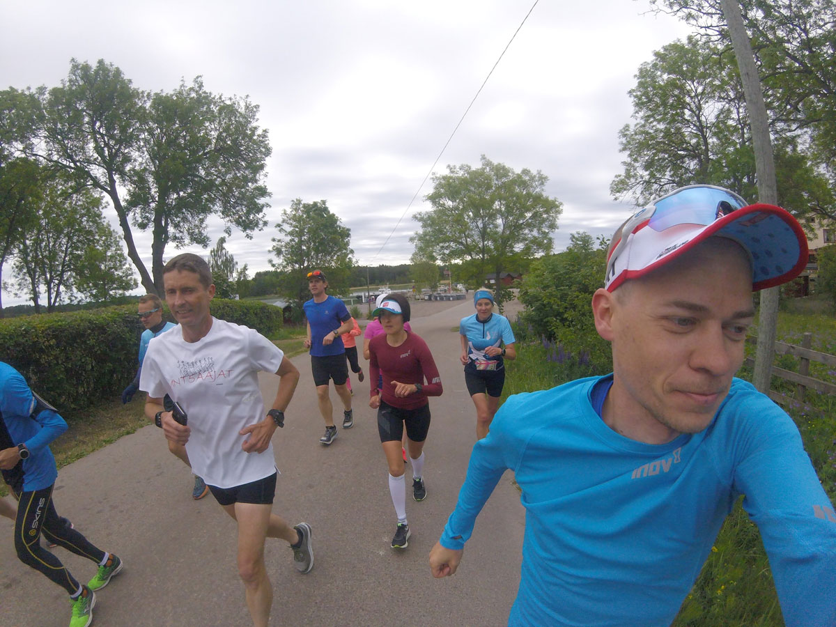 16.06.2018 Forssan Suvi-ilta Forssaan lähti kiitettävästi FMR:n värein varustettuja juoksijoita. Ja kuten tavallista se näkyy sitten myös palkintopallilla ahkerana käyttönä. Terävintä kärkeä oli tällä kertaa maratonilla M40-sarjan voiton pykännyt Janne Saarnilehto ja N50-sarjassa Heli Lehtinen. Maratonilla vuoltiin myös hopeaa Kimmo Oinaksen ja Mikko Heiniön toimesta. Puolimaratonilla Henri Ansio osoitti jälleen kerran armotonta kuntoa kirjaamalla voiton nimiinsä. Henri Helvilä säesti erinomaisesti pronssilla. Kirkkaimman mitalin makuun pääsi myös Ilpo Ikonen voittaen M70-sarjan. Mitalit myös nuorukaisille Tuula Sivander-Heinoselle ja Petri Fremanille. Maraton: Janne Saarnilehto, M40 1., 3:05:11 Kimmo Oinas, M55 2., 3:20:15 Mikko Heiniö, M70 2., 3:51:04 Heli Lehtinen, N50 1., 3:57:33 Puolimaraton: Henri Ansio, MYL 1., 1:13:10 Henri Helvilä, MYL 3., 1:17:50 Petri Freman, M45 3., 1:34:50 Mikko Tiistola, MYL 29., 1:36:28 Kaj-Mikael Salo, M45 5., 1:38:47 Tuula Sivander-Heinonen, N50 2., 1:38:48 Jyri Heinonen, M55 8., 1:43:04 Jukka Valo, M55 12., 1:45:10 Ilpo Ikonen, M70 1., 1:46:45 10 km: Esa Koli, M40 6., 45:05 09.06.2018 SOR18 Kutakuinkin joka toinen vuosi järjestetty SOR juostiin tällä kertaa Heponiemestä Nauvoon. Siitäkin näyttää tulevan perinne, että joka toisella kerralla suunta aina vaihtuu. SOR:ssa matkataan paljon lautoilla ja losseilla ja juoksuetapit ovat varsin lyhyitä, noin 3-5 km kerrallaan. Päivä oli kaikin puolin nätti ja enimmäkseen juostiin juoksuun sopivassa 15-20 asteen puolipilvisessä säässä. Juoksijoita oli 12 ja mikä parasta, suurin osa taivalsi lähes koko matkan. Osalle reissu oli jopa ensimmäinen matka maratonin tuolle puolen. Useimmille matkaa kertyi hieman reilu 60 km noin 10 tunnin kokonaisajassa, josta 6 tuntia oli juoksua. Kilometrivauhti oli näin pitkälle matkalle ja isolle porukalle siis varsin hyvä 6:00 / km. Nauvossa saunottiin ja syötiin pizzat päälle. ![]()